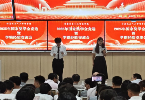 (通讯员:江多美、向沛雯,审稿人:李继军)为深入推进学风建设,充分发挥优秀学生的榜样引领作用,10月9日晚,计算机与人工智能学院在教学楼三栋202隆重举办了2025年国家奖学金竞选暨学霸经验交流会。此次活动还通过抖音平台进行了同步直播,旨在弘扬榜样精神,营造浓厚的学习氛围。