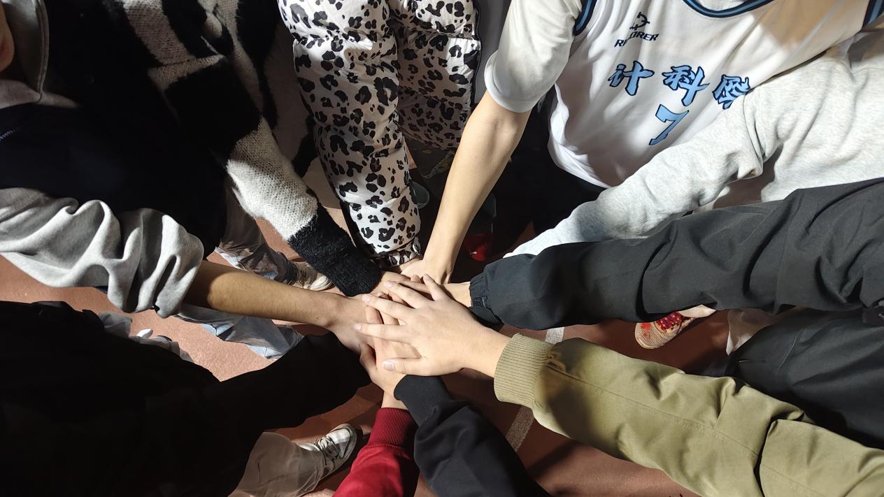 (图为计智学院篮球队赛前激励)
