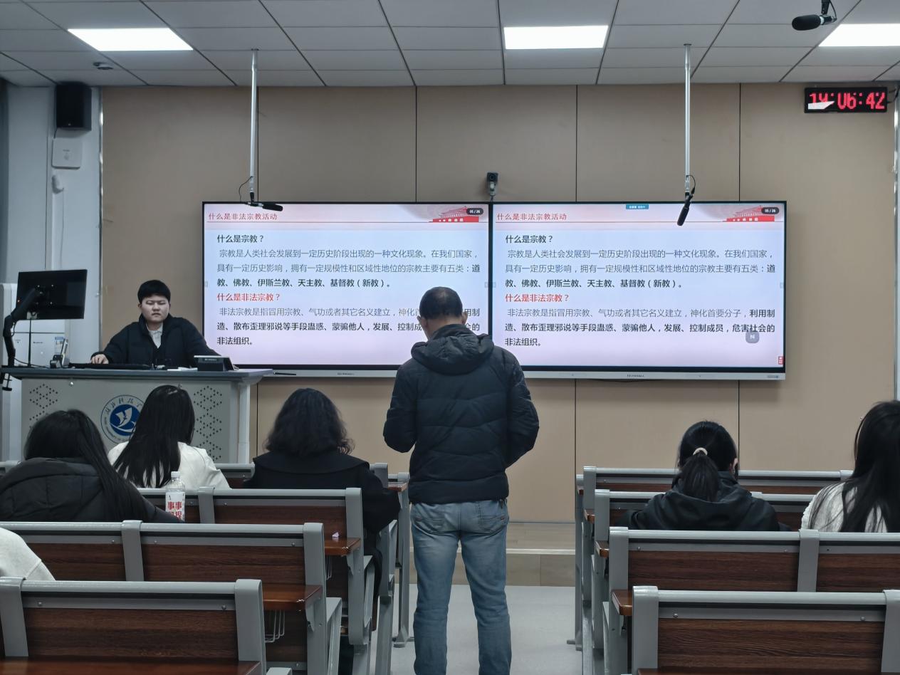 班会提出“五不”准则等行动要求,提醒学生警惕新型网络宗教渗透手段,遇相关情况及时上报。此次班会厚植了学生的法治素养与科学信仰,未来学院将持续开展宣传教育,引导师生共建文明、安全、清朗的校园环境。(审稿人:桂学勤)