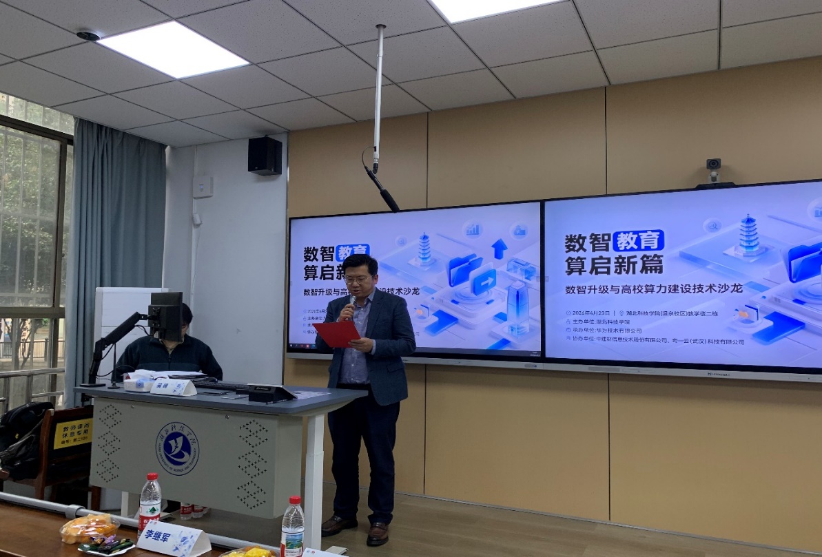(通讯员 鲁屹华 审稿 邓树文 徐斌) 4月23日下午,“数智教育,算启新篇—数智升级与高校算力建设技术沙龙”在湖北科技学院举行。本次活动由湖北科技学院主办,华为技术有限公司承办,中建材信息、鸾一云科技协办。计算机与人工智能学院、电子与电气工程学院全体教师参会。
